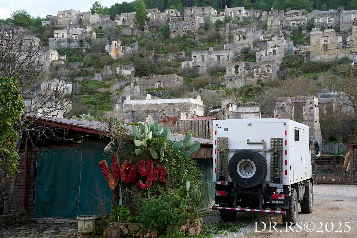 10 km außerhalb von Fethiye besuchen wir das verwaiste Dorf Kayaköy, Zeugnis einer weiteren europäischen Geschichtsmonstrosität (siehe Bericht).